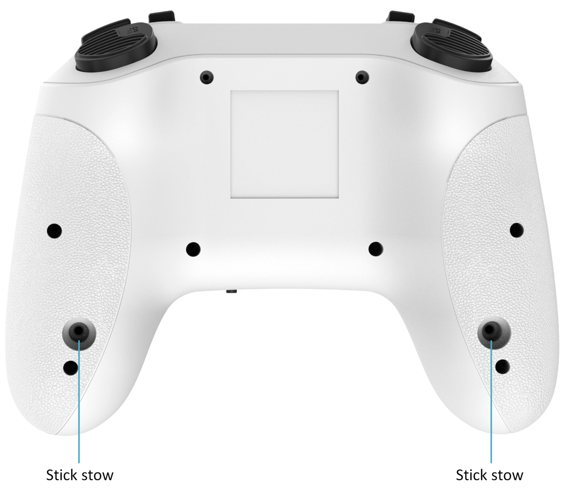 The joystick is detachable and can be stored on the back of the radio. A copper nut is provided on the back of the radio to secure the joystick in place during storage. Storing it this way helps protect the gimbals from damage.