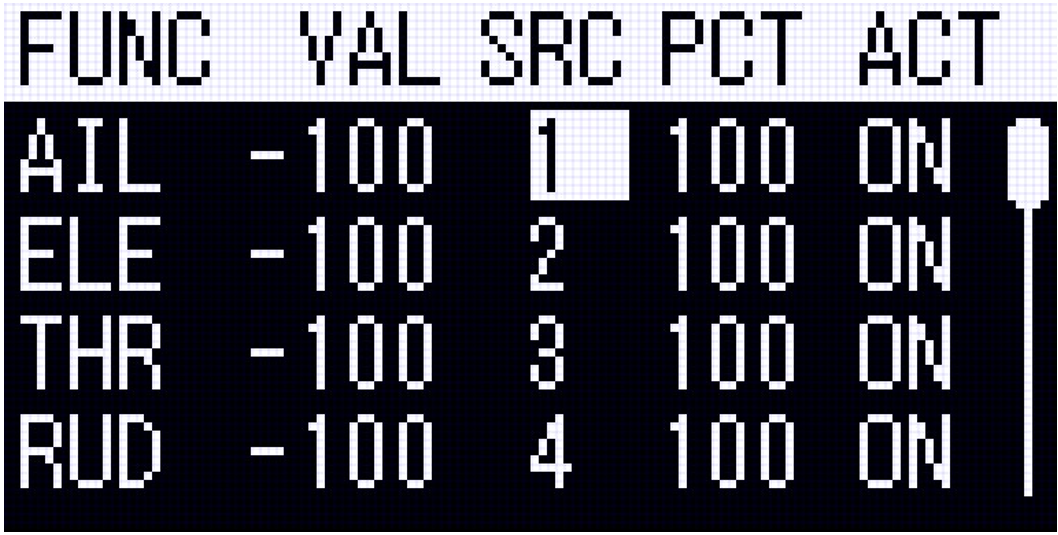Use "Calibrate Slave" to ensure that the endpoints of the slave radio are correct. The "VAL" column shows the stick position of the slave radio from -100 to 100.
