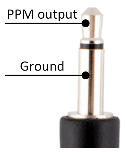 The HDZero Radio's trainer jack supports multiple functions, including training mode and head tracking input from goggles. The trainer jack DSC function complies with industry standards and is compatible with most other radios with Spektrum, Edge TX, and other popular software. The trainer jack uses a 3.5mm mono (2-poles) cable as shown.
